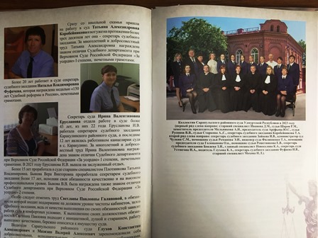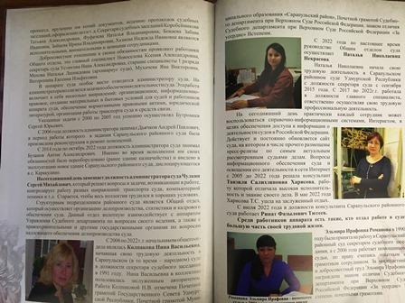 Сарапульский районный суд принял участие в подготовке юбилейной книги к празднованию 150-летия со дня открытия Сарапульского окружного суда. Это событие стало частью программы, направленной на сохранение памяти о важных исторических вехах суда в г.Сарапуле. Книга включает в себя редкие архивные фотографии, которые позволяют увидеть, как развивался суд на протяжении десятилетий, узнать о деятельности судей и аппарата суда.